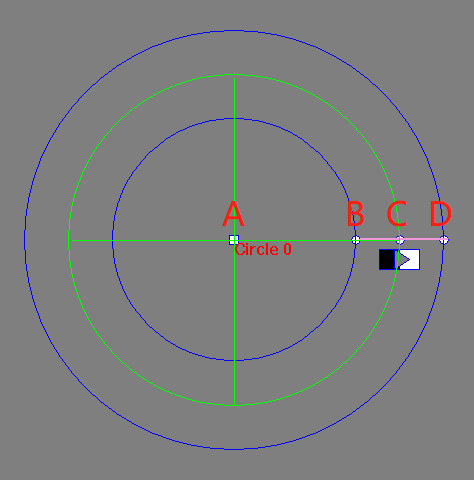 控制點(diǎn)A:使用鼠標(biāo)點(diǎn)選該控制點(diǎn)可拖動(dòng)整個(gè)圓工具