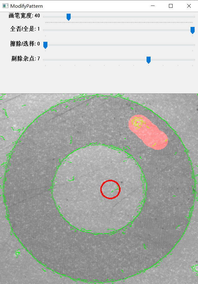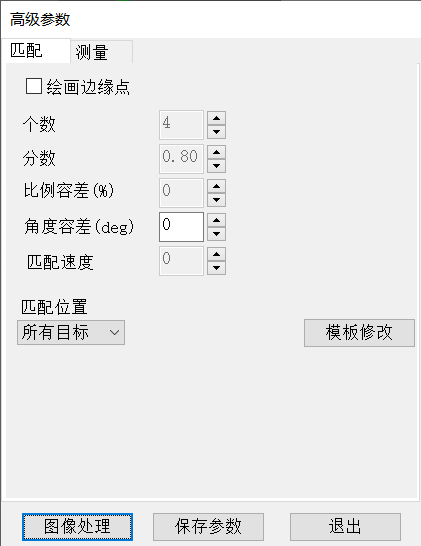 當(dāng)圖像的質(zhì)量較差時(shí),邊緣模糊產(chǎn)生大量的雜點(diǎn);從而增加了搜索的時(shí)間,同時(shí)影響了搜索的準(zhǔn)確性。通過(guò)調(diào)整【剔除雜點(diǎn)】去除大部分的干擾點(diǎn),優(yōu)化了模板的輪廓信息。