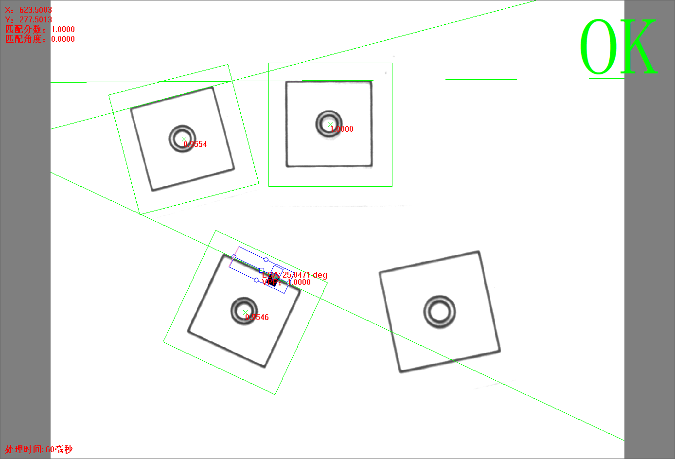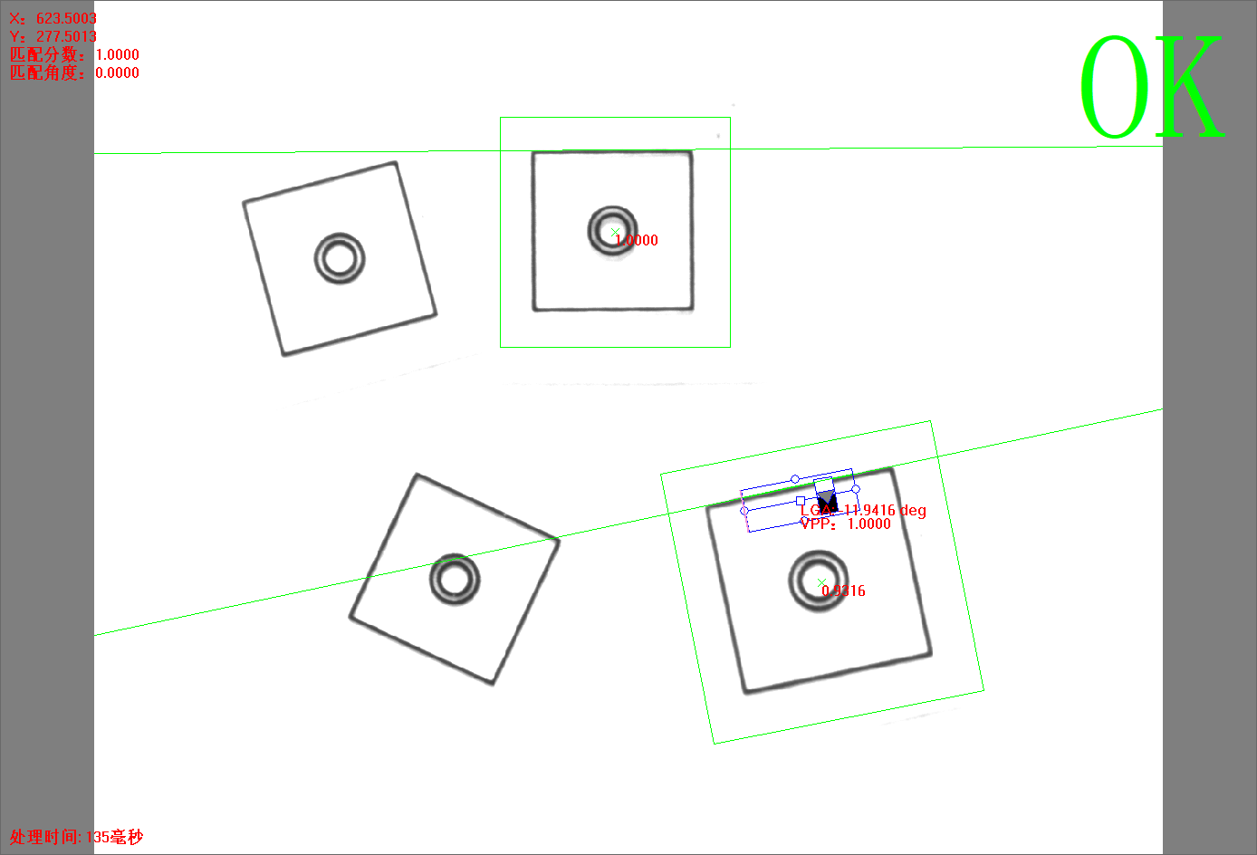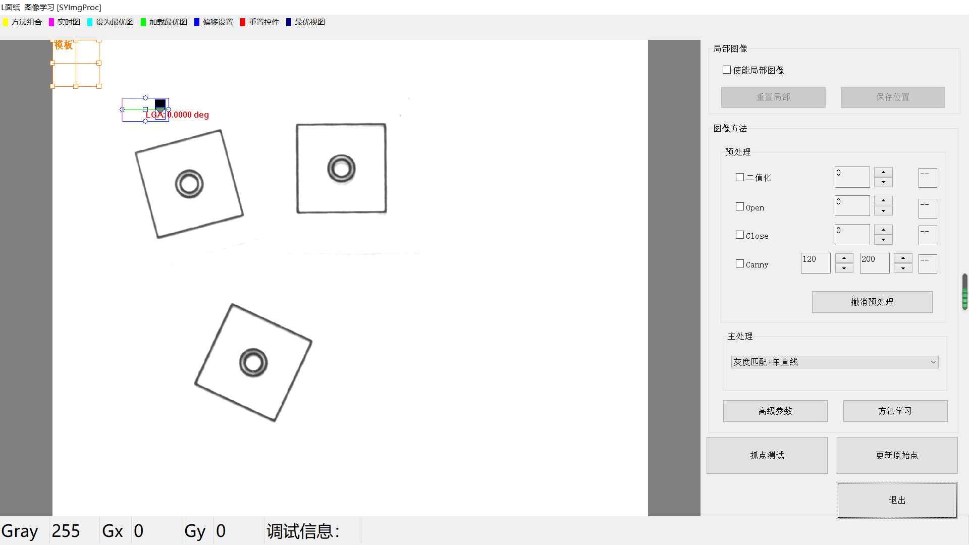 點(diǎn)擊【方法學(xué)習(xí)】后,灰度匹配+單直線方法的所有信息將被保存,并自動(dòng)進(jìn)行圖像處理,相關(guān)的信息將顯示。