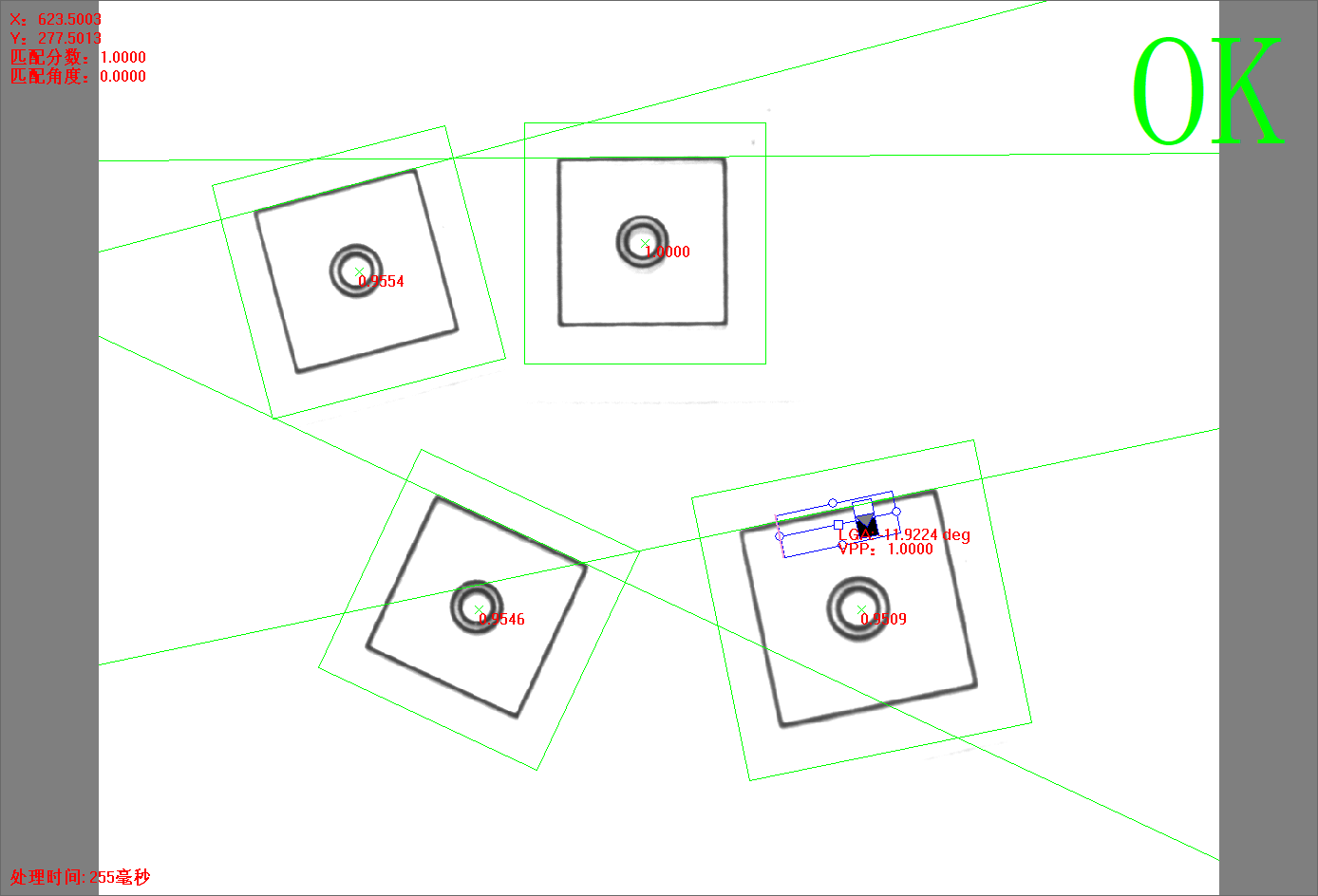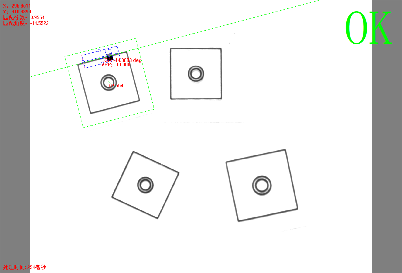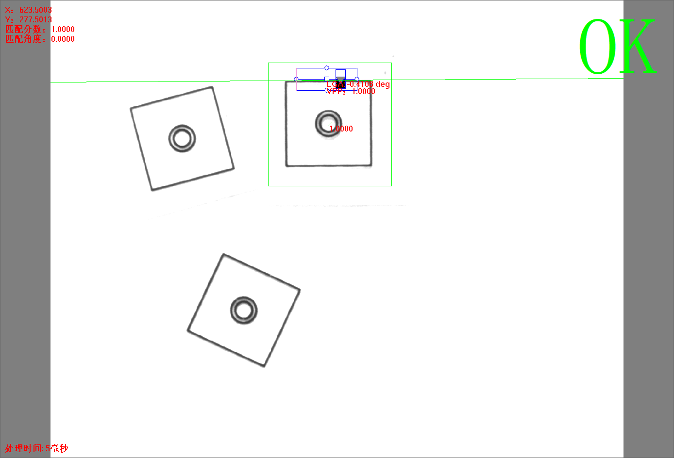點(diǎn)擊【方法學(xué)習(xí)】后,灰度匹配+單直線方法的所有信息將被保存,并自動(dòng)進(jìn)行圖像處理,相關(guān)的信息將顯示。