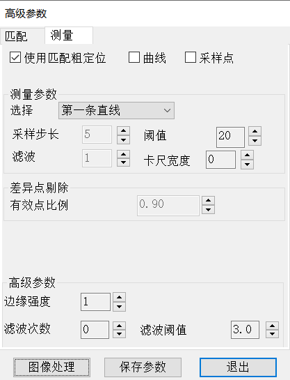 匹配作為粗定位使用,直線工具跟隨粗定位自動(dòng)改變位置;對(duì)于目標(biāo)比較固定的情況,可不采用粗定位功能。