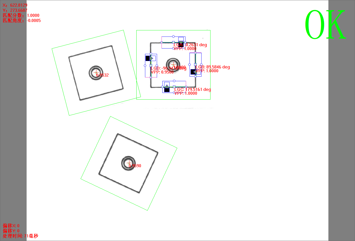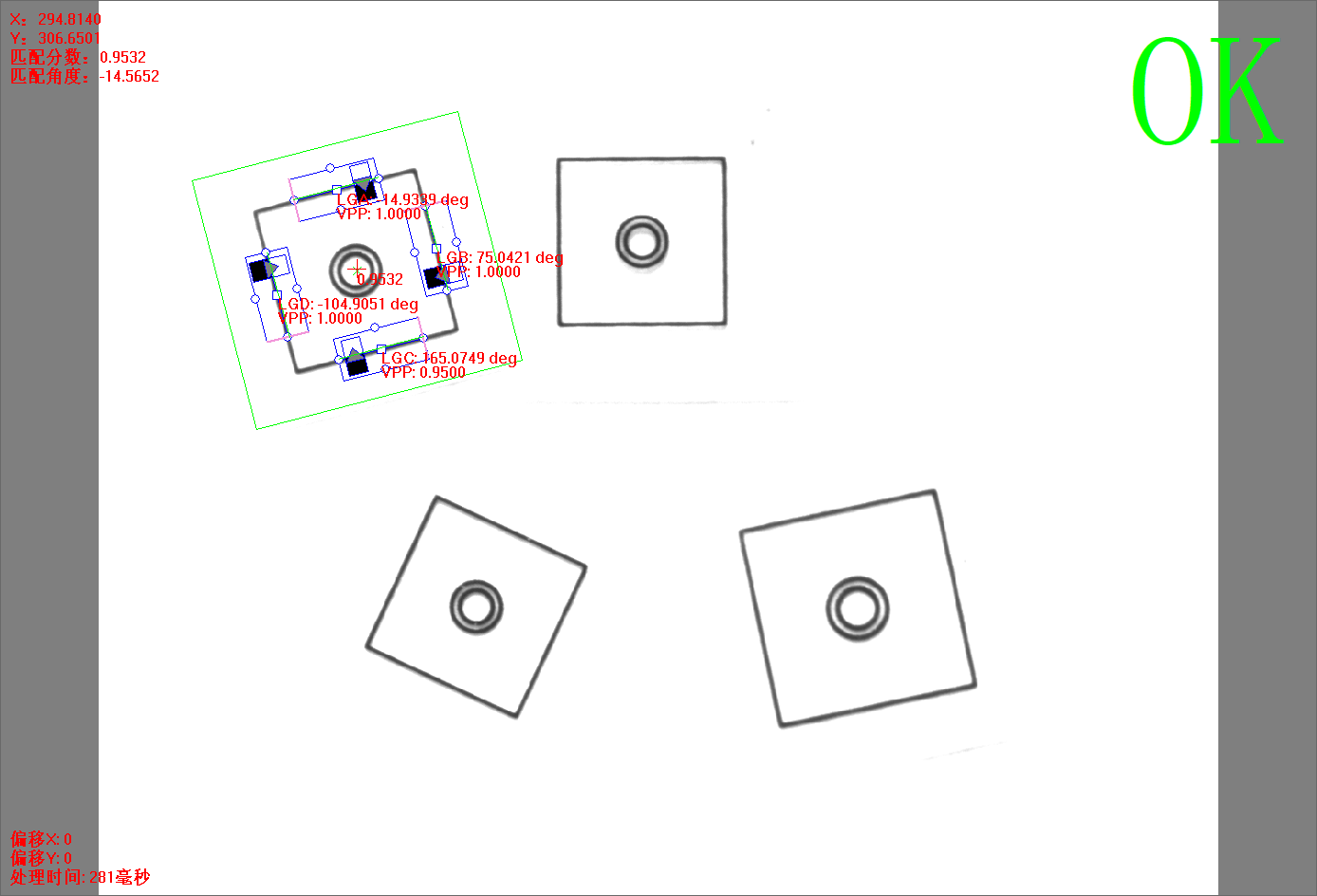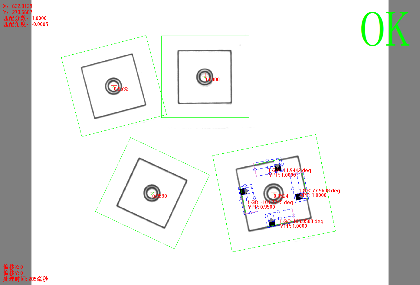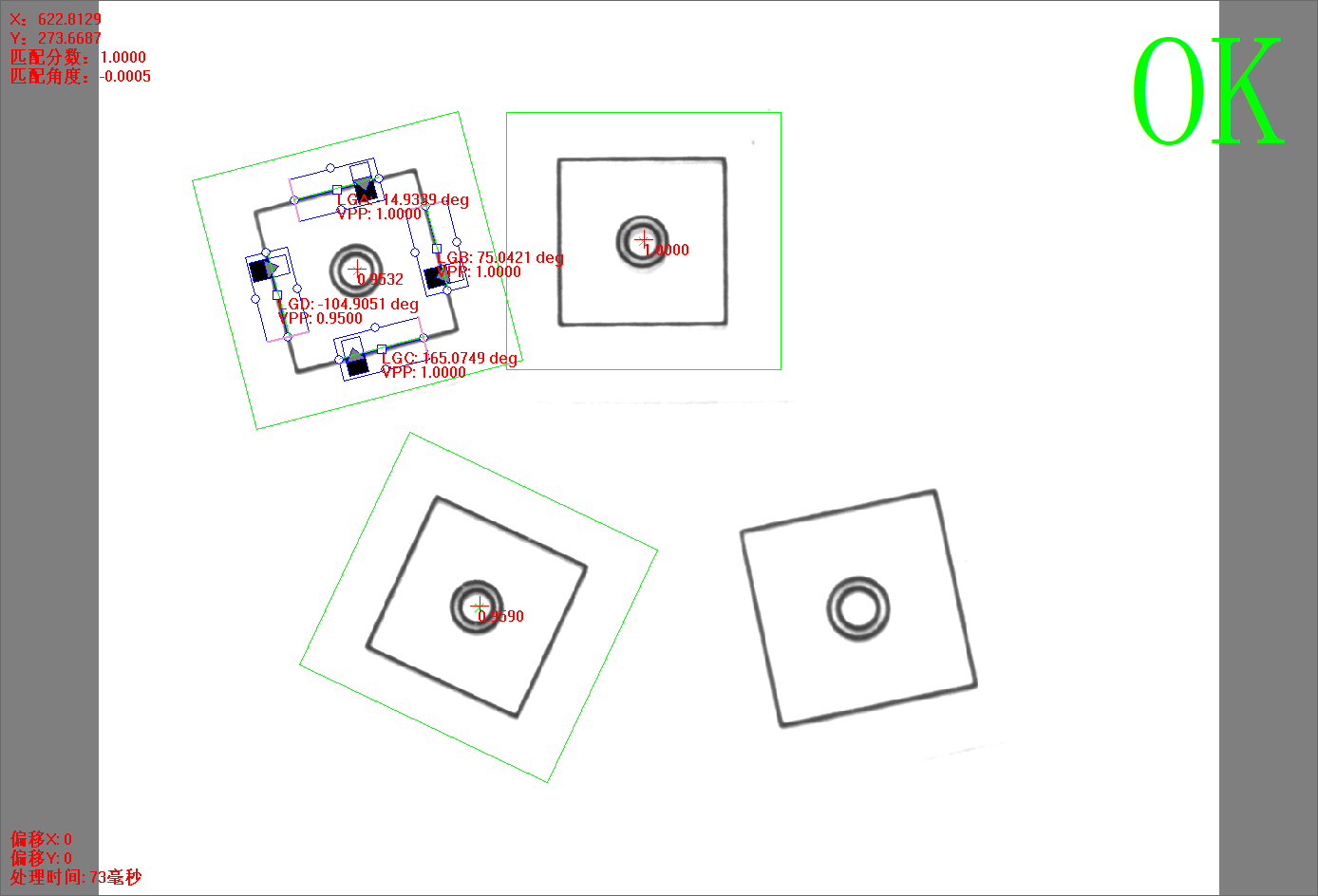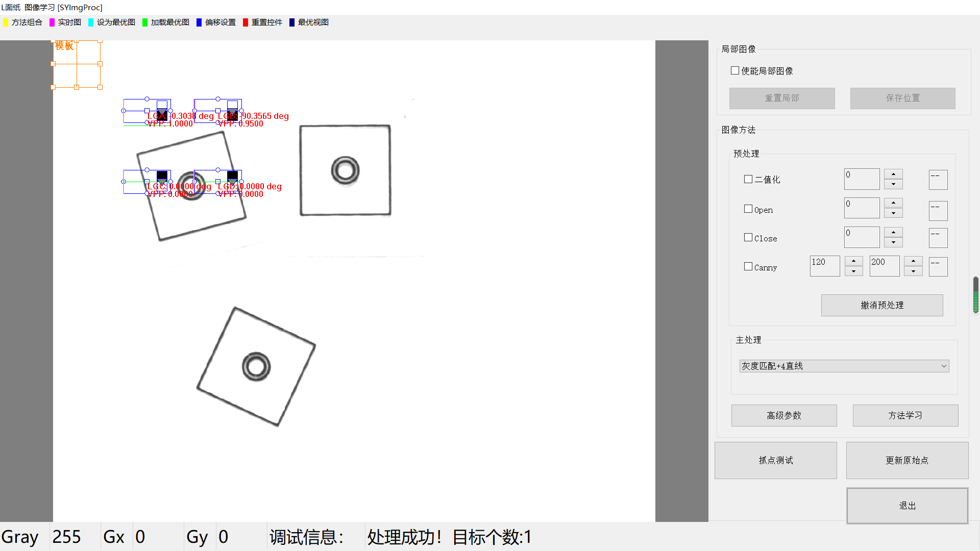 點擊【方法學(xué)習(xí)】后,灰度匹配+4直線方法的所有信息將被保存,并自動進行圖像處理,相關(guān)的信息將顯示。