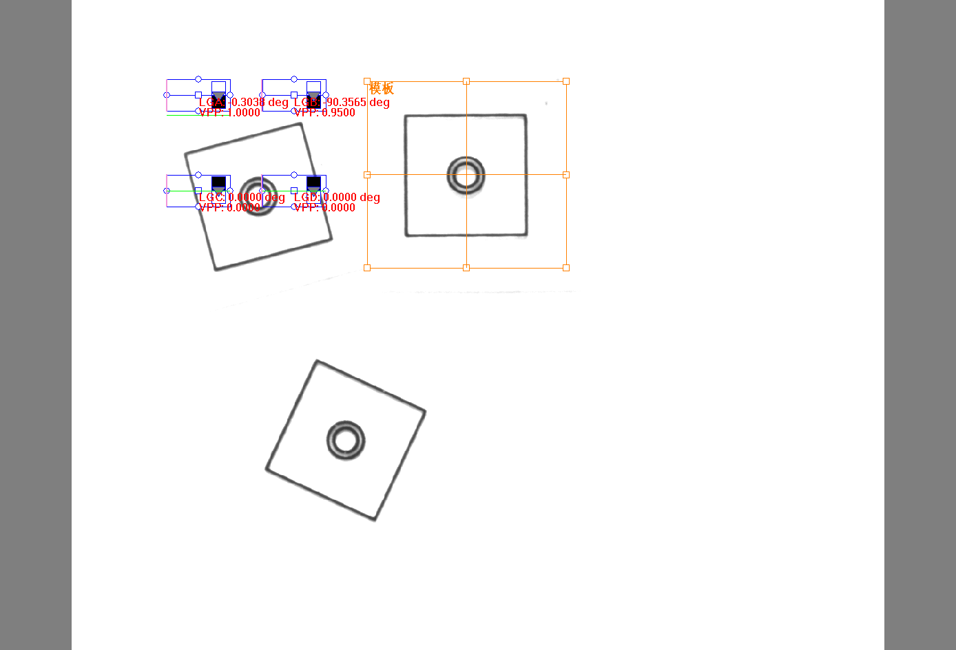 圖像中的目標(biāo)發(fā)生角度變化,設(shè)置角度容差,即可更好地尋找角度發(fā)生旋轉(zhuǎn)的目標(biāo)。