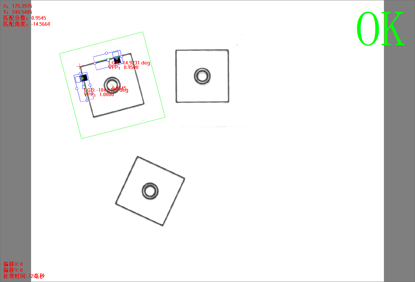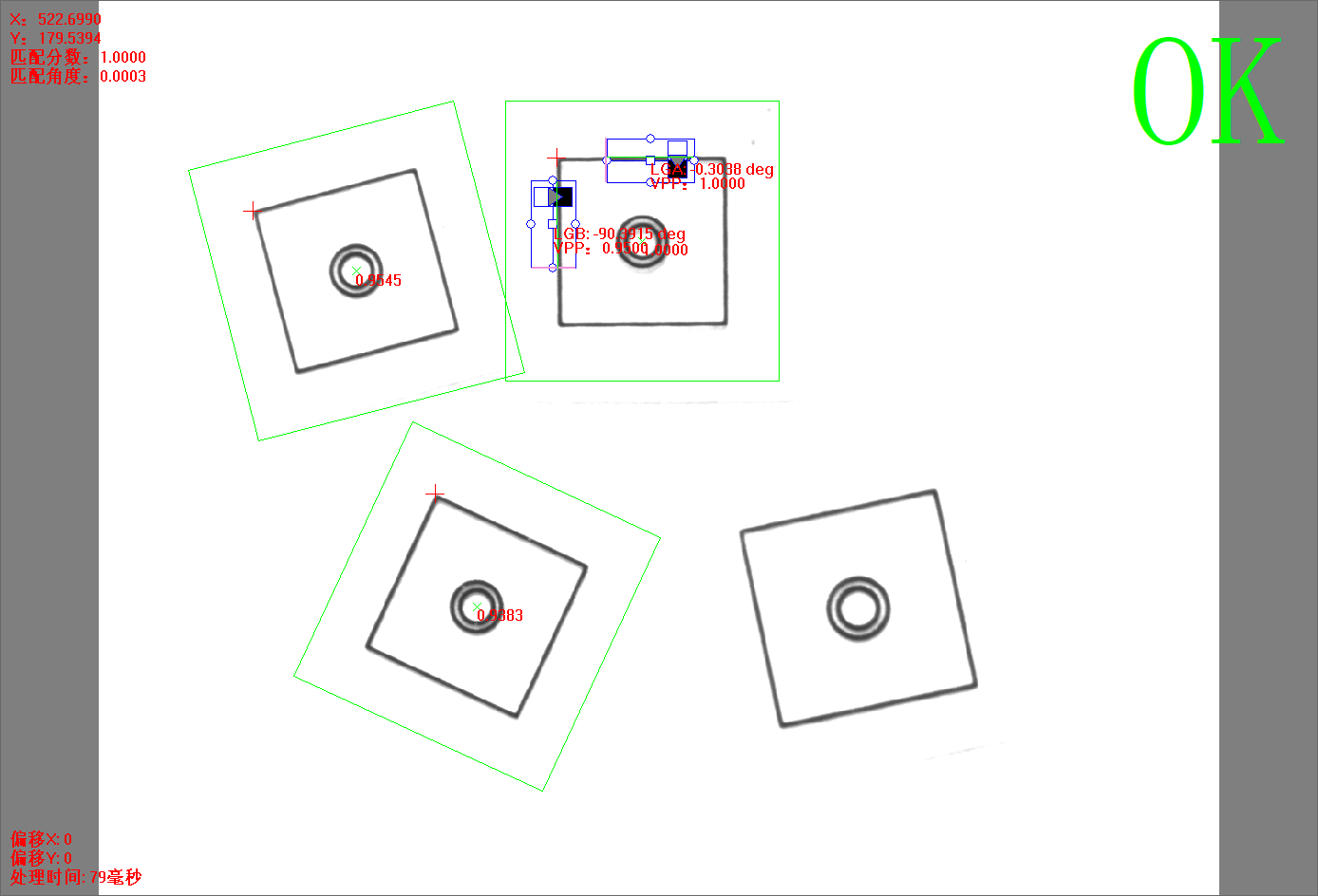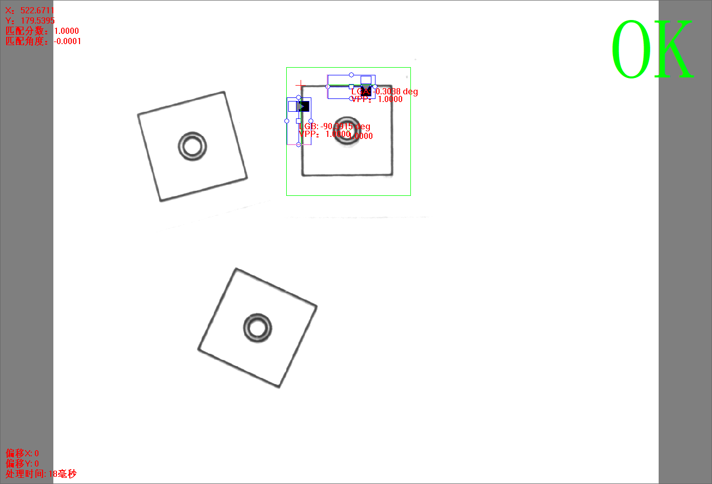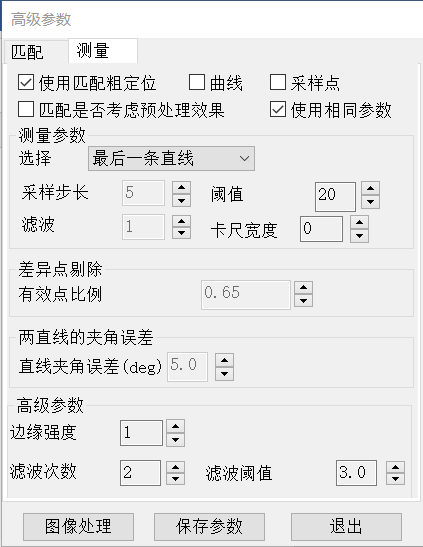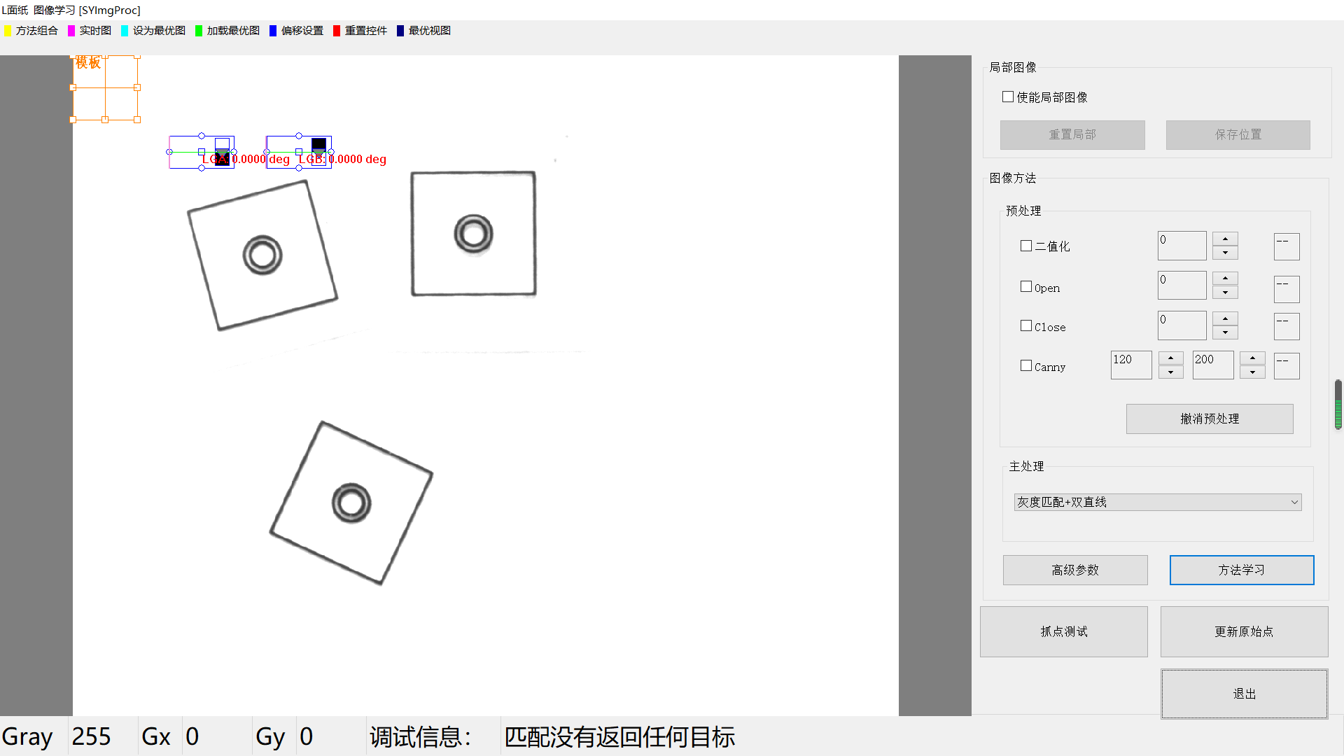 點擊【方法學(xué)習(xí)】后,灰度匹配+雙直線方法的所有信息將被保存,并自動進行圖像處理,相關(guān)的信息將顯示。