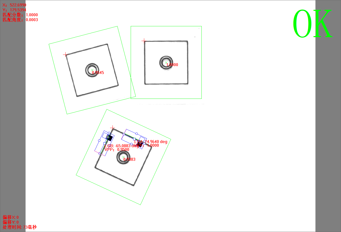 圖像中的目標(biāo)發(fā)生角度變化,設(shè)置角度容差,即可更好地尋找角度發(fā)生旋轉(zhuǎn)的目標(biāo)。