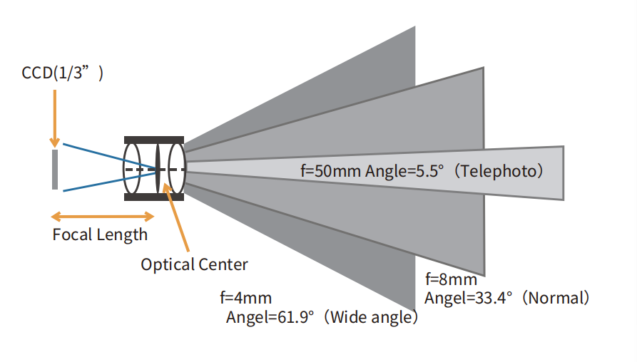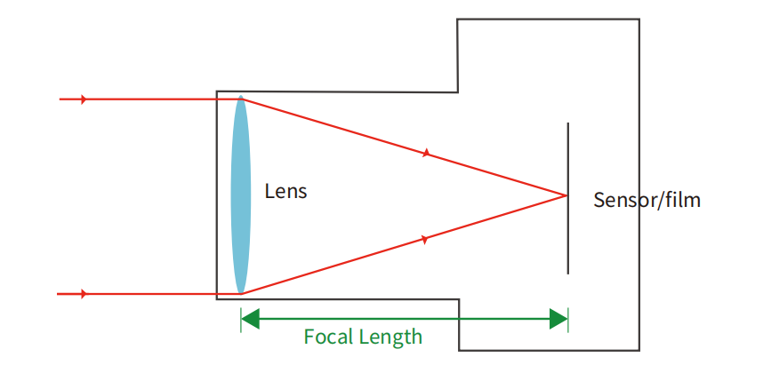 入射光平行于鏡頭光軸入射時,鏡頭后主點到成像面的距離,稱為焦距。衡量光學(xué)系統(tǒng)對光線聚集或散發(fā)的程度。