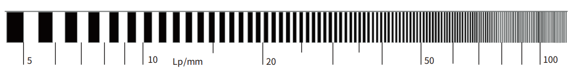 一般用像方空間分辨能力來描述鏡頭的解像力,單位為每mm內(nèi)的黑白線對數(shù)(1p/mm);在搭配相機使用時,鏡頭可分辨的黑白線對寬度應(yīng)小于或等于相鄰兩個像元尺寸;實際應(yīng)用中建議鏡頭的分辨率要高于相機的分辨率。