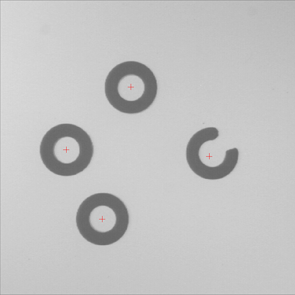 目標區(qū)域內(nèi)的斑點個數(shù)必須大于等于設(shè)定的個數(shù),否則報錯。所有的斑點坐標求平均值作為結(jié)果。以下舉例: