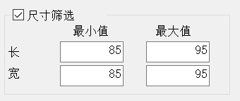 通過設(shè)置尺寸的最小值、最大值,進行斑點篩選。尺寸(長、寬)在最小值、最大值之間的斑點被保留,之外的斑點被剔除。