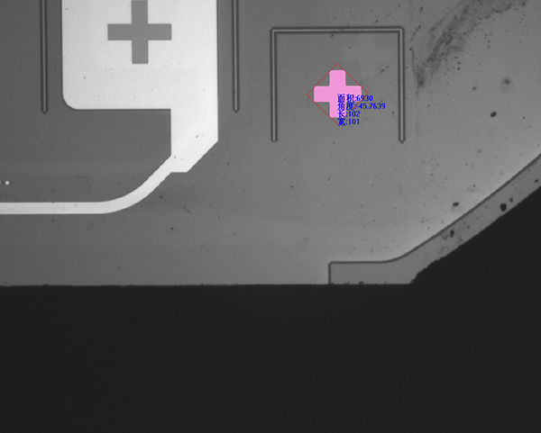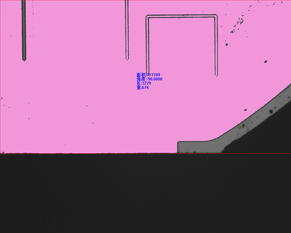 鼠標左鍵點擊圖像中需要分析的斑點類型(黑或白),目標將會被著粉紅色,并顯示斑點的特征信息。