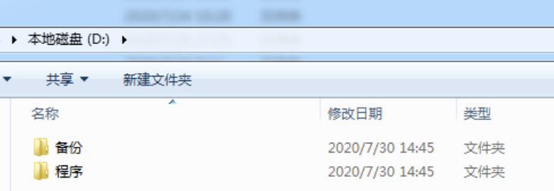 在D盤新建兩個文件夾,分別叫“備份”和“程序”。