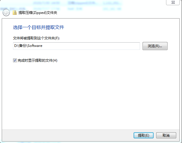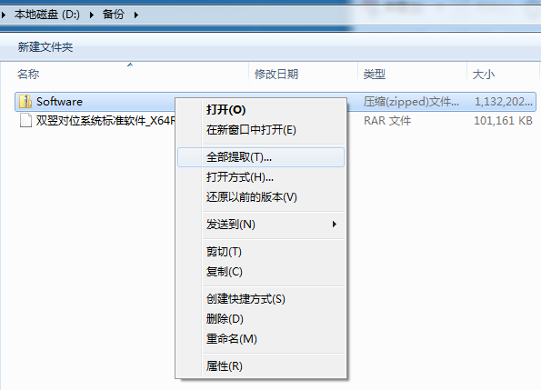 右鍵單擊Software.zip,選擇“全部提?。═)...”,彈出的對話框點擊“提取”。