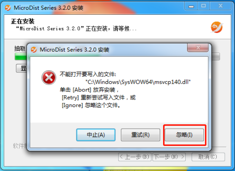 →如果出現(xiàn)錯誤提示點擊“忽略”。
