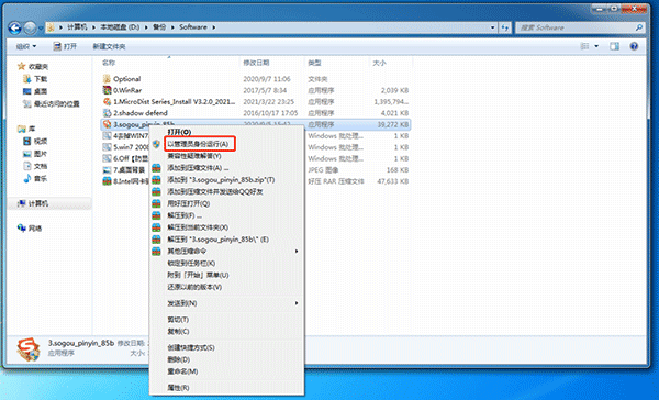 右鍵單擊“3.sogou_pinyin_85b.exe”程序安裝包。