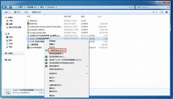 右鍵單擊文件“5.win7 2008取消修復(fù)模式.bat”。
