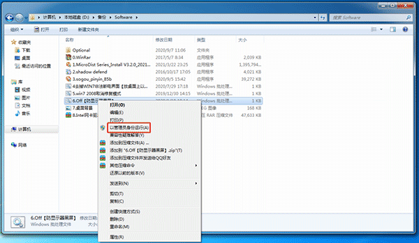 右鍵單擊文件“6.Off【防顯示器黑屏】.bat”。