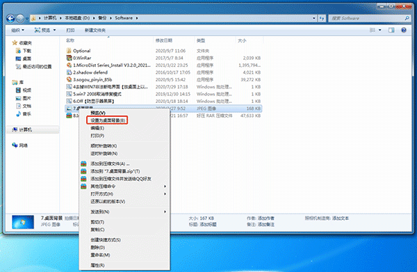 右鍵單擊文件“7.桌面背景.jpg”。點擊“設(shè)置為桌面背景”。