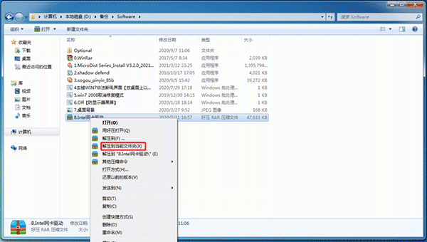 右鍵單擊文件“8.Intel網(wǎng)卡驅(qū)動.rar”。