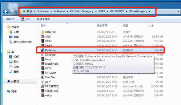 在解壓后的文件夾路徑下找到“DxSetup.exe”應(yīng)用程序。雙擊打開。