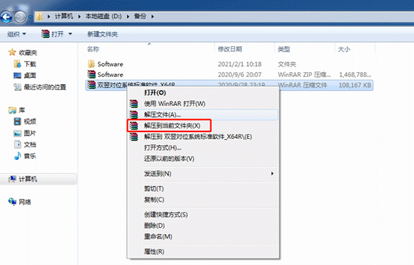 將U盤中的“Software”壓縮包文件拷貝至“備份”文件夾中