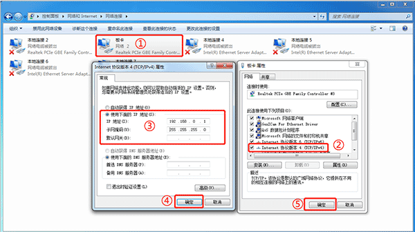 →右鍵點開“運動控制卡”的網(wǎng)絡(luò)屬性,按以下順序修改運動控制卡的IP地址