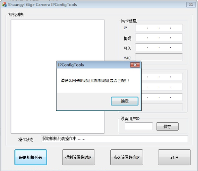 2)在程序目錄打開相機(jī)IP配置小程序:IPConfigTools.exe;