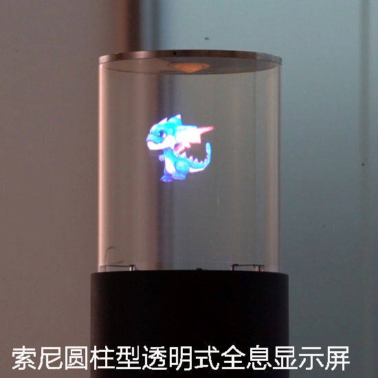 別看官網(wǎng)給出的照片只顯示了一個(gè)簡單的卡通圖案,要做到 360 度無死角呈現(xiàn)同一畫面絕非易事。通常情況下,透明顯示屏很難兼顧透明度和投影亮度,索尼采用的是一種既能保持高透明度又能高亮度顯示影像的全息顯示屏,配合圓柱投影光學(xué)設(shè)計(jì)解決了這一難題。