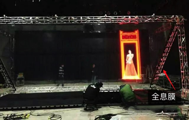 早在 19 世紀(jì),佩珀?duì)柣孟笠言谖枧_(tái)演出中廣泛應(yīng)用,現(xiàn)代技術(shù)下的佩珀?duì)柣孟笠巡恍枰硌菡唠[藏在舞臺(tái)下方,而是可以將制作好的影像投映到全息膜上,加上打光和和 CG 技術(shù),足以做到以假亂真。