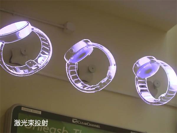 空氣投影:用霧化設(shè)備產(chǎn)生大量人工霧,形成一層很薄的水霧墻作為圖像載體,利用分子震動(dòng)不均衡產(chǎn)生立體感,但水霧顆粒大,成像效果不佳,多見于景區(qū)。