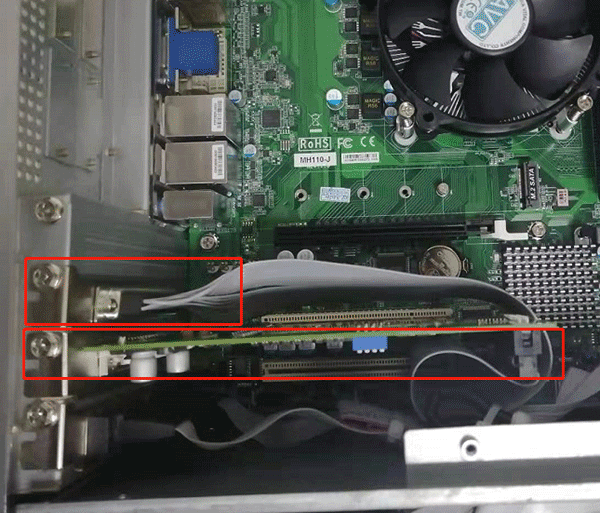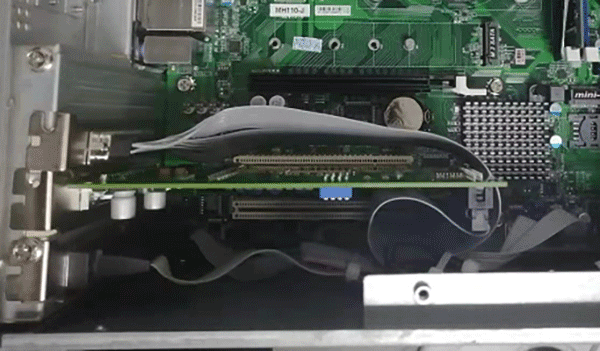 5. 將PCI-9014卡插入工控機中,并鎖上螺絲,注意安裝時手別碰觸到PCI-9014卡上的芯片;