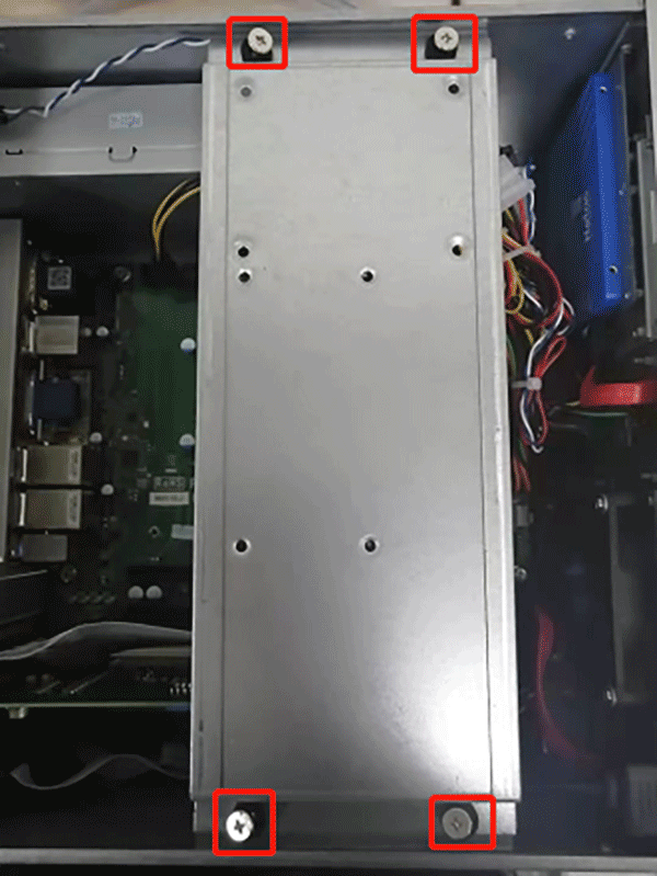 2. 擰下固定機箱擋板的四顆螺絲并拆下?lián)醢澹?/p>