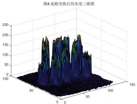 那么為什么底帽變換或頂帽變換可以達(dá)到上述效果呢,下面以底帽變換為例,通過(guò)圖像的灰度三維圖來(lái)進(jìn)行解釋。