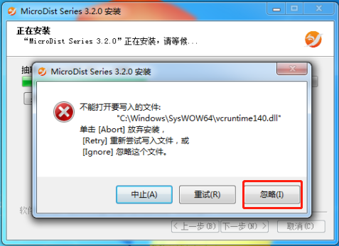 →如果出現(xiàn)錯(cuò)誤提示點(diǎn)擊“忽略”。
