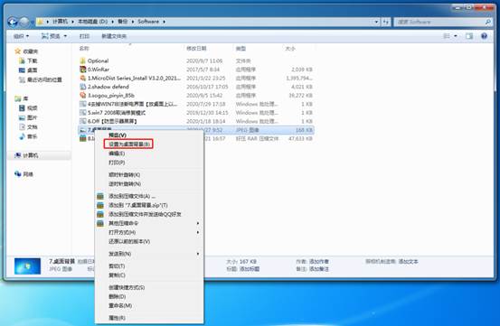右鍵單擊文件“7.桌面背景.jpg”。點(diǎn)擊“設(shè)置為桌面背景”。