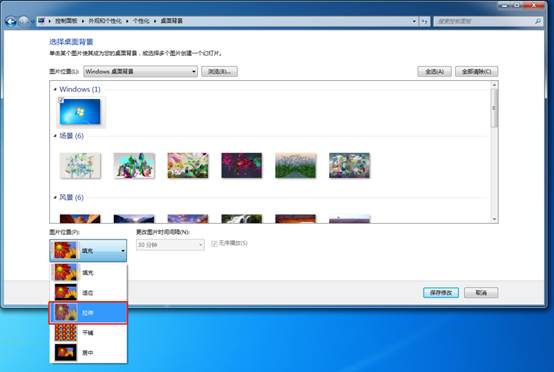 在“圖片位置”選項(xiàng)中選擇“拉伸”