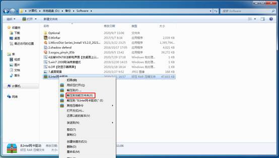 右鍵單擊文件“8.Intel網(wǎng)卡驅(qū)動(dòng).rar”。