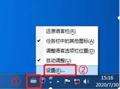 右鍵單擊圖中①指示的小鍵盤,點(diǎn)擊“設(shè)置”。
