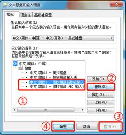 選中不需要的輸入法,點(diǎn)擊“刪除”→“應(yīng)用”→“確定”