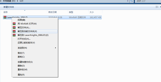 將項(xiàng)目使用到的最新程序壓縮包解壓到當(dāng)前文件夾,選擇LaserKnight_X86UD,右鍵單擊進(jìn)行解壓。