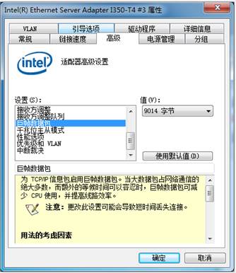 →將“高級(jí)”選項(xiàng)卡中的“巨幀數(shù)據(jù)包”屬性,修改為“9014字節(jié)”