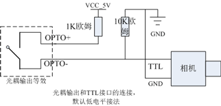 可連接TTL輸入接口的相機(jī),但需要通過上拉電阻或下拉電阻。