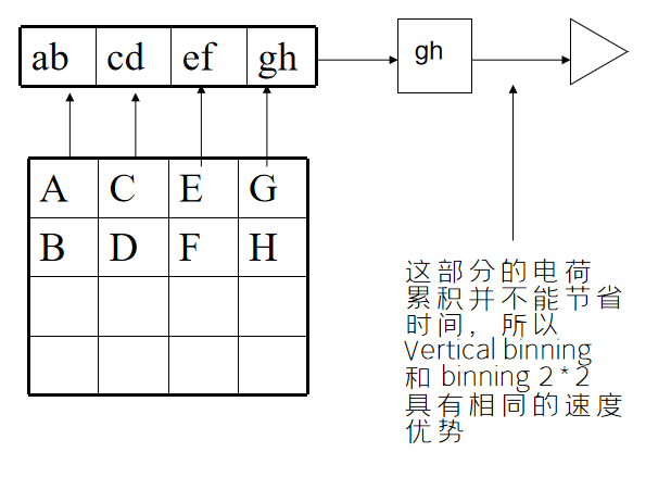 Binning 的作用,在于,把相臨幾個像素所積累的電荷累加起來。作為一個電荷進(jìn)行轉(zhuǎn)換。這樣做的效果,相當(dāng)于把幾個像素拼成了一個大像素使用。優(yōu)點(diǎn),速度快。缺點(diǎn),分辨率降低。