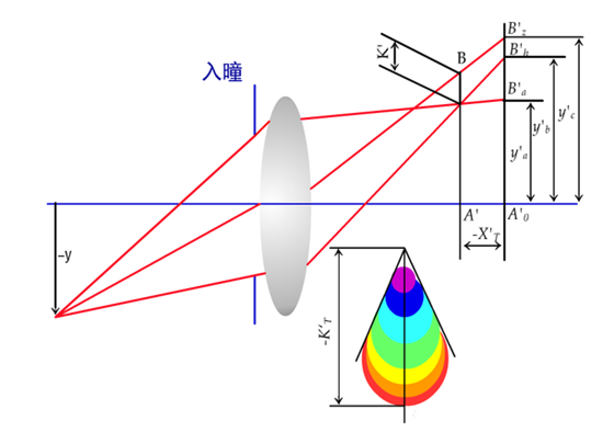 慧差:由位于主軸外的某一軸外物點(diǎn),向光學(xué)系統(tǒng)發(fā)出的單色圓錐形光束,經(jīng)該光學(xué)系列折射后,若在理想像平面處不能結(jié)成清晰點(diǎn),而是結(jié)成拖著明亮尾巴的慧星形光斑,則此光學(xué)系統(tǒng)的成像誤差稱為慧差。