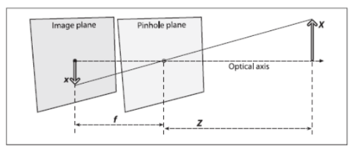 說(shuō)起這個(gè),就不得不提到針孔模型。如圖3所示,針孔模型是凸透鏡成像的一種簡(jiǎn)化模型。當(dāng)物距足夠遠(yuǎn)時(shí)(遠(yuǎn)大于兩倍焦距),凸透鏡成像可以看作是在焦距處的小孔成像。