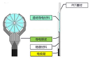車載電子逐步采用觸摸按鍵面板(圖1)替代傳統(tǒng)的物理按鍵面板(圖2),而性價(jià)比最好的當(dāng)屬電容式感應(yīng)觸摸薄膜。電容式感應(yīng)觸摸薄膜能夠穿透絕緣材料(玻璃、塑料等)外殼 8mm以上,可以準(zhǔn)確無(wú)誤地偵測(cè)到手指的有效觸摸區(qū)域。還保證了產(chǎn)品的靈敏度、穩(wěn)定性、可靠性等,不會(huì)因環(huán)境條件的改變或長(zhǎng)期使用而發(fā)生變化,并具有防水和強(qiáng)抗干擾能力,超強(qiáng)防護(hù),超強(qiáng)適應(yīng)溫度范圍等優(yōu)點(diǎn)。電容觸摸薄膜結(jié)構(gòu)如圖3。