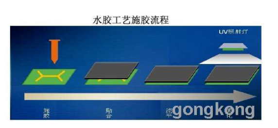 優(yōu)點:可以粘接曲面或者不平整表面材料,對油墨厚度不敏感,易返工,成本較OCA低。