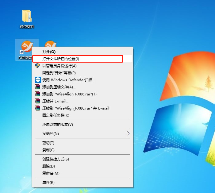 如下圖所示,鼠標指著A對位軟件,右鍵,然后點擊打開文件夾所在位置。