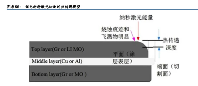 激光模切和機械模切相比速度較快(機械 40-50m/s,激光 60-70m/s),但前者成本較高、 可切厚度較低、可能燒蝕極片等問題比疊片提速容易解決。目前比亞迪等公司用疊片加機 械模切,是因為現(xiàn)在生產(chǎn)效率的瓶頸是疊片工序,其生產(chǎn)速度還不需匹配激光膜切。一旦 疊片單機速度提升,激光膜切在生產(chǎn)速度上就有明顯優(yōu)勢。出于效率匹配,選擇機械模切 對廠房和設(shè)備的投入更大。若未來涂布厚度提高、毛刺能有較好改善,機械模切可能仍存 在一定市場份額。目前從商業(yè)化過程中核心的生產(chǎn)效率來看,未來技術(shù)方向是卷繞加激光 膜切。