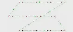 早期的激光切割機(jī)的空程如下圖所示,切割頭要次第完成三個動作:上升(到足夠安全的高度)、平動(到達(dá)點(diǎn)B的上方)、下降。