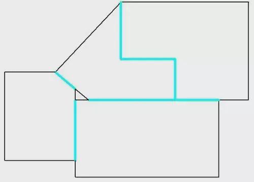 如果相鄰的零件輪廓是直線,且角度相同,則可以合為一條直線,只切割一次。此即共邊切割。顯而易見,共邊切割減少了切割長度,可顯著提高加工效率。共邊切割并不要求零件的外形是矩形。如下圖。